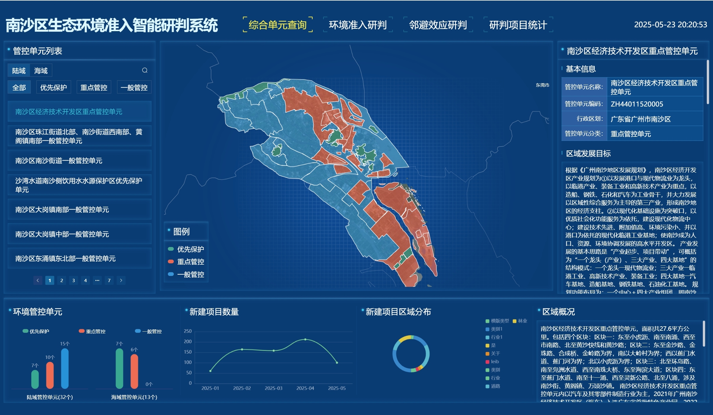 近日,广州市生态环境局南沙分局(下称“南沙分局”)委托生态环境部华南环境科学研究所开发的建设项目选址智慧决策平台——“南沙区生态环境准入智能研判系统”上线试运行。